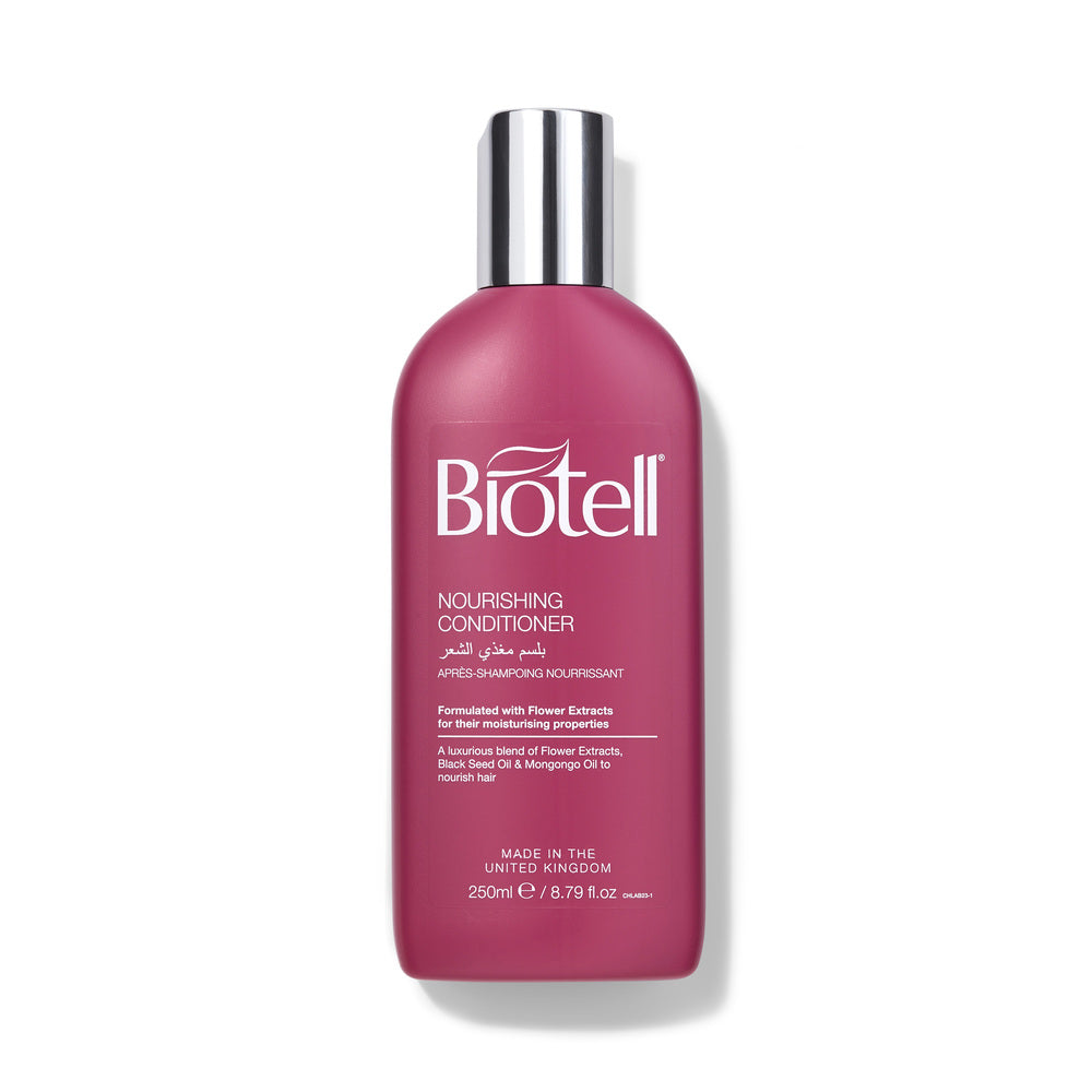 Biotell Nourishing Conditioner boasts a luxurious mix of Flower Extracts & Organic Mongongo Oil, packed with Vitamin E, known for their moisturising & hydrating effects on hair. The addition of Black Seed Oil works as a nutritious emollient. This combination makes the perfect conditioner for those needing extra nourishment on their hair strands.